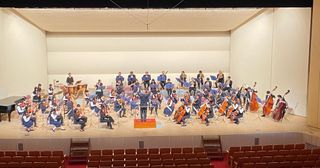 オーケストラ(管弦楽)の曲も演奏しています。ピアノ、打楽器、ヴァイオリン、ヴィオラ、チェロ、コントラバスの団員を募集中です。
